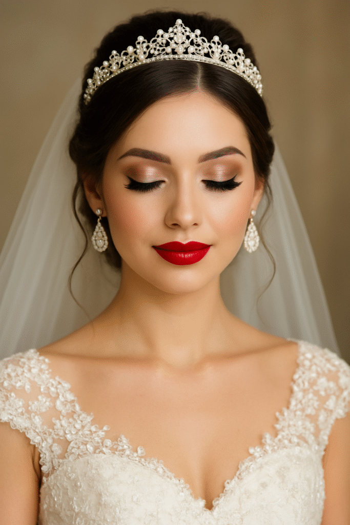 - Glamorous Bridal Look – Shimmering eyeshadows, contouring, and bold lips for a more dramatic effect.